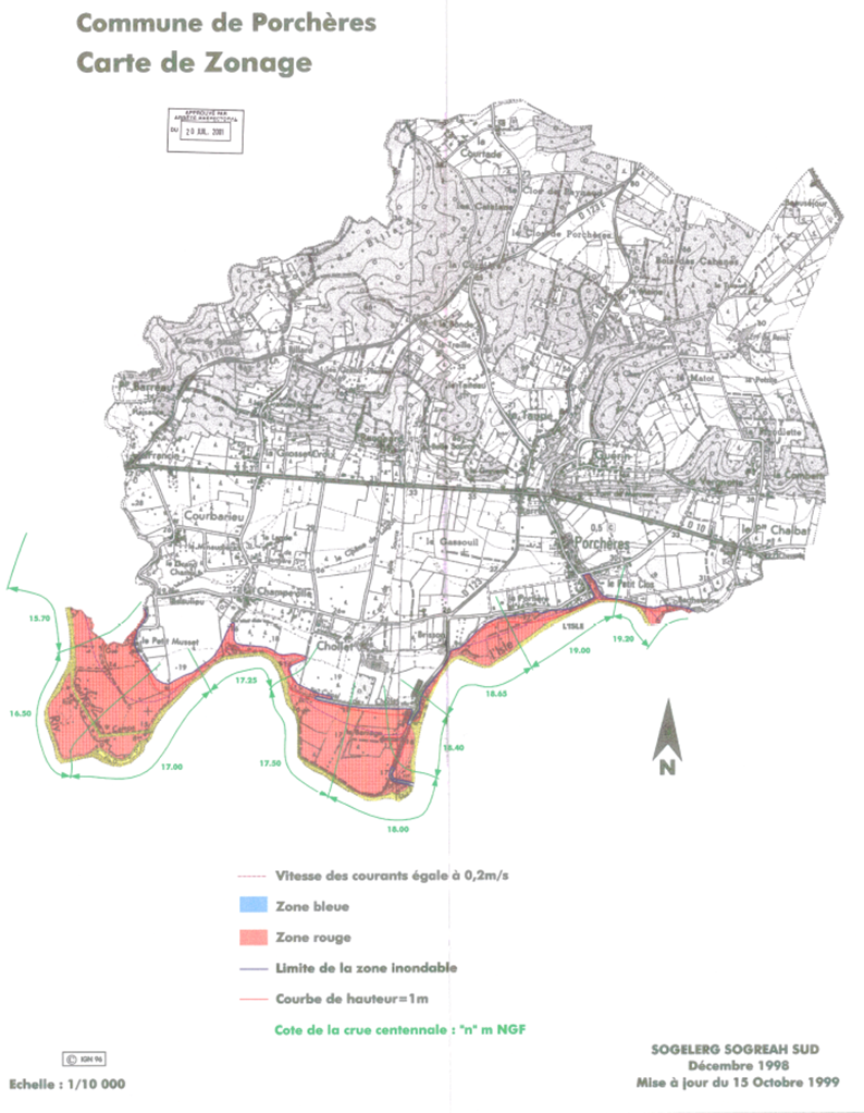 La commune de Porchères a donc un PPRI (Plan de Prévention du Risque d'Inondation) qui règlement les usages, notamment en matière d'urbanisme.