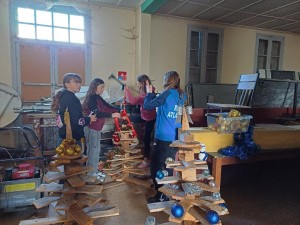 Samedi 7 décembre 2024, les jeunes du CMJ étaient à l'oeuvre pour habiller les sapins de Noël de guirlandes, de boules, de pommes de pins...
