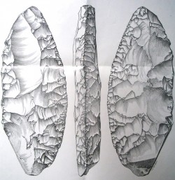 Ce silex brun-blond taillé, qui pèse plus de 10 kg et mesure 52,4 cm de longueur, 21 cm de largeur et 8,4 cm d’épaisseur n’a jamais fait l’objet d’une étude approfondie.