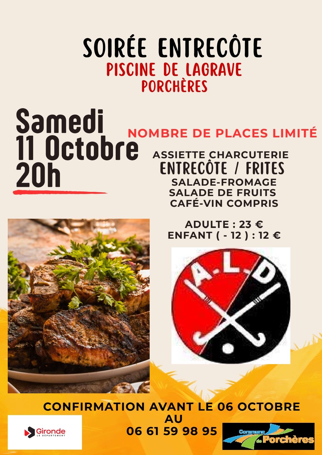 11 Octobre : Repas Entrecôte Frites à la piscine de Lagrave, organisé par l'Association l'Avenir de la Double