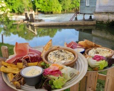 A la belle saison, la terrasse du Moulin de Porchères vous accueille avec son restaurant La Table du Moulin de Porchères.