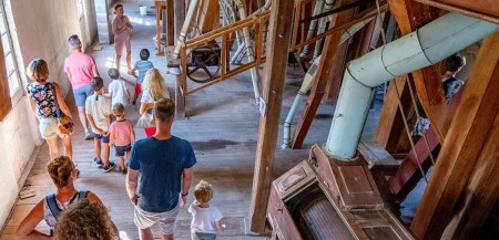 Mais au XIXème siècle, une nouvelle technique apparaît, n’utilisant plus les meules. C’est une technique venue de Hongrie, "la meunerie hongroise". On utilise alors des cylindres en métal qui, en frottant l’un contre l’autre, écrasent les grains de blés. Ce qui vient d’être écrasé passe dans les tamis et en fonction de la grosseur des grains obtenus, va être envoyé vers des cylindres qui écrasent un peu plus petit. Et ainsi de suite jusqu’à l’obtention de la farine. Cette technique s’appelle une minoterie. C’est le mécanisme qui équipe le moulin du Barrage.